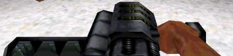 The Pre-Alpha version of this weapon is signifcantly different than in the final game. The model is different; it is a launcher with a handle, and a open clip holding the bombs on the left side.